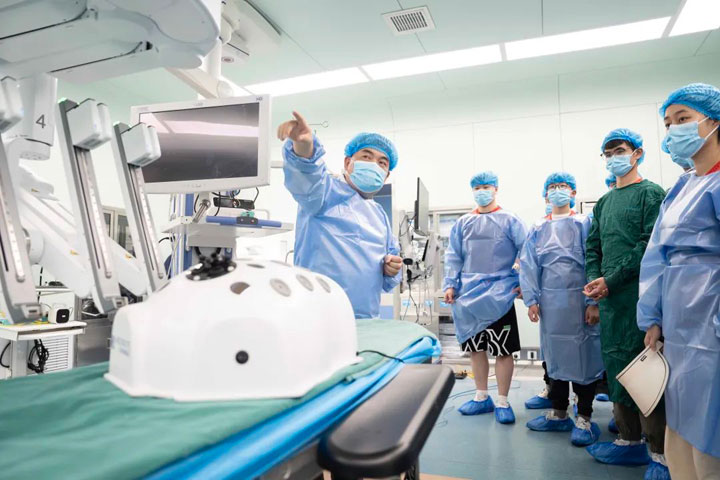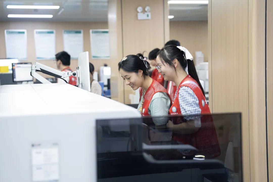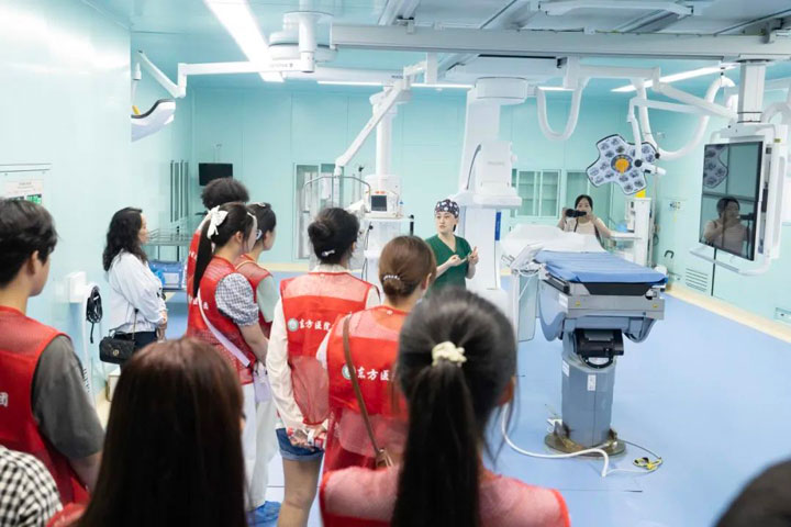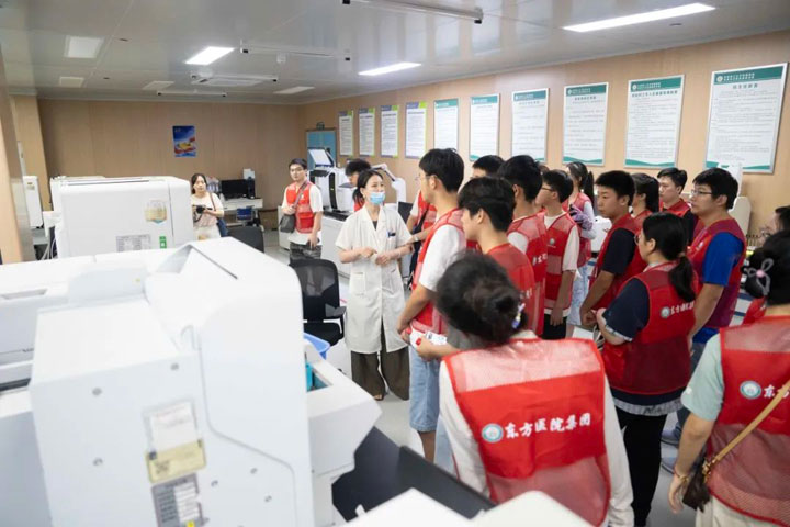 本次體驗(yàn)營(yíng)吸引了眾多學(xué)員,既有醫(yī)學(xué)院在讀學(xué)生,也有對(duì)醫(yī)學(xué)領(lǐng)域充滿濃厚興趣的普通學(xué)生。在醫(yī)院的周密安排下,學(xué)員們擺脫了旁觀者的角色,化身探索者,深入多個(gè)核心醫(yī)療部門進(jìn)行實(shí)地探訪。在影像中心,現(xiàn)代化的成像技術(shù)為他們揭開了人體內(nèi)部構(gòu)造的奧秘;在檢驗(yàn)中心,學(xué)員們近距離接觸了自動(dòng)化生化分析儀、血液細(xì)胞分析儀、免疫檢測(cè)系統(tǒng)等核心設(shè)備,專業(yè)技術(shù)人員現(xiàn)場(chǎng)講解了這些高科技儀器如何快速、精準(zhǔn)地處理樣本、分析數(shù)據(jù),將看不見(jiàn)的血液、體液指標(biāo)轉(zhuǎn)化為清晰可讀的診斷報(bào)告,揭示了微觀世界里蘊(yùn)藏的生命密碼與健康信息;導(dǎo)管室內(nèi)模擬的血管介入手術(shù)場(chǎng)景,則讓學(xué)員們切身感受到現(xiàn)代醫(yī)學(xué)的精準(zhǔn)與高效。尤其令人印象深刻的是手術(shù)室中啟動(dòng)的手術(shù)機(jī)器人系統(tǒng),其行云流水般的精準(zhǔn)操作贏得了年輕探索者的陣陣驚嘆,直觀地揭示了科技給外科領(lǐng)域帶來(lái)的革命性進(jìn)步。