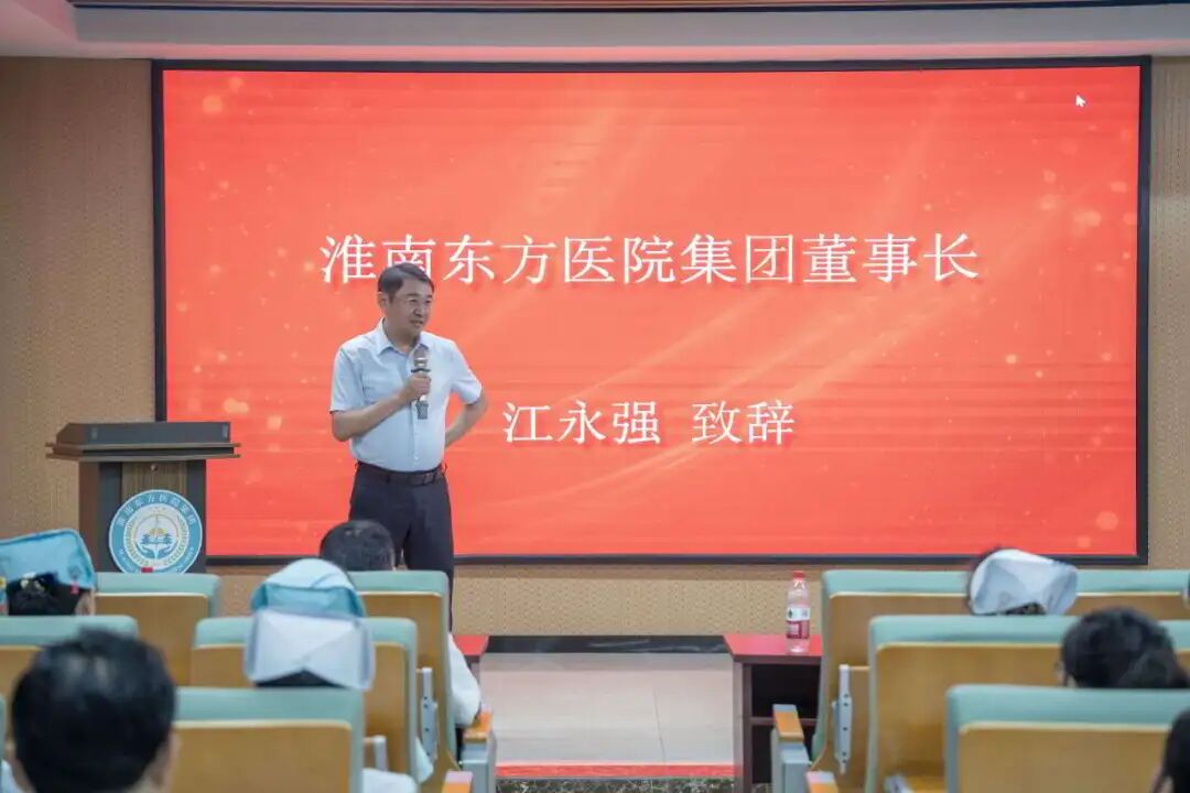 大會(huì)在莊重而熱烈的氛圍中拉開帷幕。淮南東方醫(yī)院集團(tuán)董事長(zhǎng)江永強(qiáng)首先為大會(huì)致辭。他代表集團(tuán)黨委、董事會(huì),向全體教師致以節(jié)日的問候和崇高的敬意,并對(duì)受到表彰的教師表示熱烈祝賀。江永強(qiáng)董事長(zhǎng)在講話中深情回顧了過去一年醫(yī)院在醫(yī)、教、研各方面取得的顯著成績(jī),特別強(qiáng)調(diào)了教師在醫(yī)學(xué)傳承與創(chuàng)新中的重要作用。他指出,教師不僅是知識(shí)的傳遞者,更是靈魂的塑造者。他引用今年教師節(jié)的主題,強(qiáng)調(diào)要以“教育家精神”為引領(lǐng),鍛造一支既有醫(yī)術(shù)又有師德的教師隊(duì)伍。江永強(qiáng)董事長(zhǎng)特別提到:“作為教育工作者,我們要始終牢記兩句話:第一句話,假如我是孩子;第二句話,假如是我的孩子?!彼麌@這兩句話展開了深刻闡述。