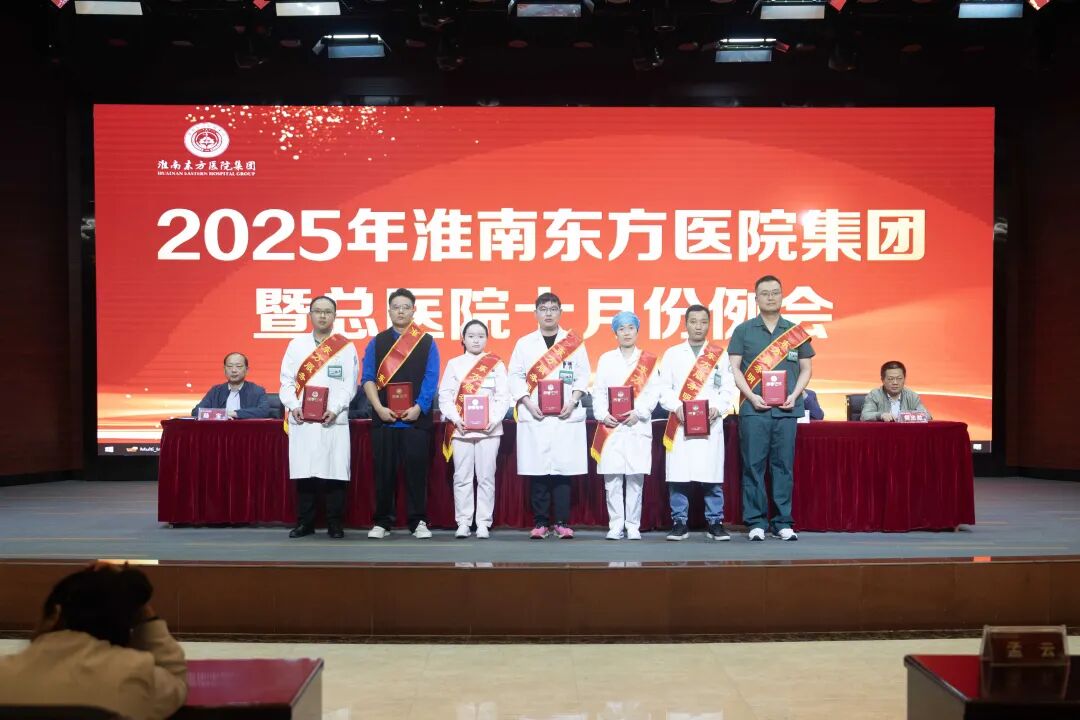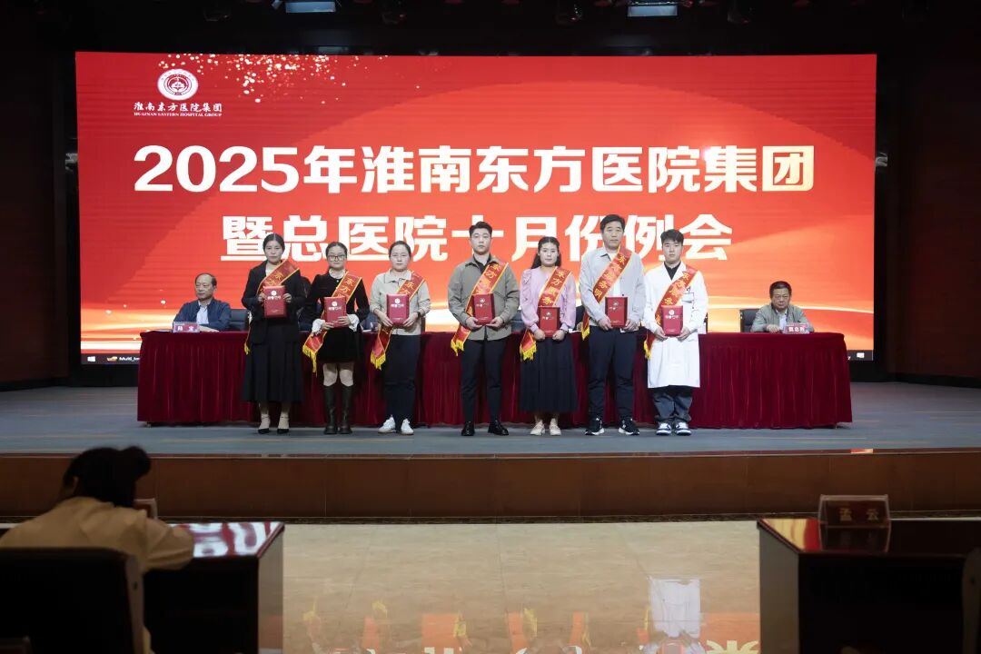 隨后,腫瘤醫(yī)院胡繼年院長宣讀關于表彰淮南東方醫(yī)院集團2025年第三季度“東方服務明星”先進個人決定?!稕Q定》授予總院李巖、畢成亞、趙祖芳、劉羅海、張斌斌、管石運;鳳凰醫(yī)院蘇雨生、陳鵬;腫瘤醫(yī)院王波;廣濟醫(yī)院楊秀雅、潘凡杰;新莊孜醫(yī)院陳禮超;田東醫(yī)院歐玉青;壽縣濟民醫(yī)院叢超強;謝橋醫(yī)院高亞南共15 位同志“東方服務明星”榮譽稱號。希望全集團職工要向受表彰先進學習,以群眾滿意為目標,牢固樹立服務和創(chuàng)先爭優(yōu)意識,為集團的改革與發(fā)展做出新的更大的貢獻。集團領導現(xiàn)場為獲獎服務明星進行頒獎。